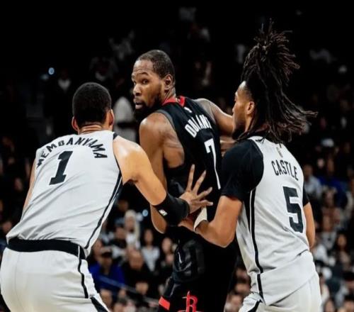 有高阶数据支撑!常规赛阶段,申京+小贾+阿门三人同时在场时,百回合赢对手5.7分;带上杜兰特的四人组:百回合只能赢对手3.1分;如果把杜兰特换成伊森,火箭这套四人组合百回合能赢对手11.2分!为什么会有这种情况出现?因为杜兰特的到来,让火箭本赛季每48分钟回合数骤降到96.1,联盟第29位。如果场上有杜兰特和申京,那火箭很难提速;但如果只有申京,另外四人会很容易加速打出冲击力。这一点到了季后赛更加明显,申京+阿门+小贾三人组,百回合能赢对手5.1分,带上杜兰特,百回合输3.8分!